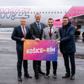 Spoločnosť Wizz Air dnes slávnostným prvým letom otvorila nové priame letecké spojenie z Košíc do talianskej metropoly Rím. Spojenie bude prevádzkované celoročne dvakrát týždenne, vždy v utorok a sobotu.